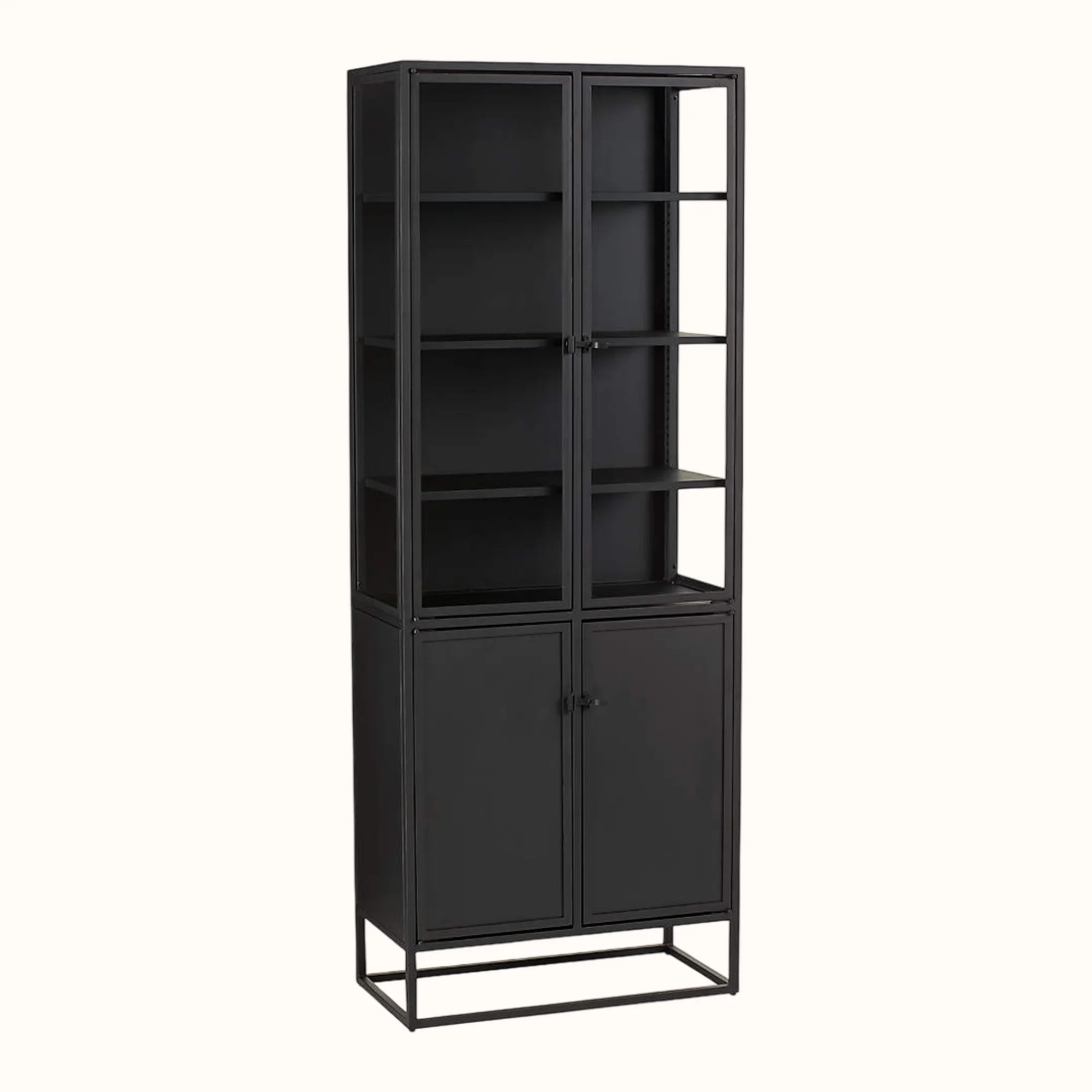 The Joel Black Bookshelf brings modern industrial style to your space. Crafted from sturdy metal with a sleek black finish, it features multiple open shelves for books, décor, or storage baskets. Durable and versatile, its clean lines make it a striking yet functional addition to living rooms, offices, or studios.
